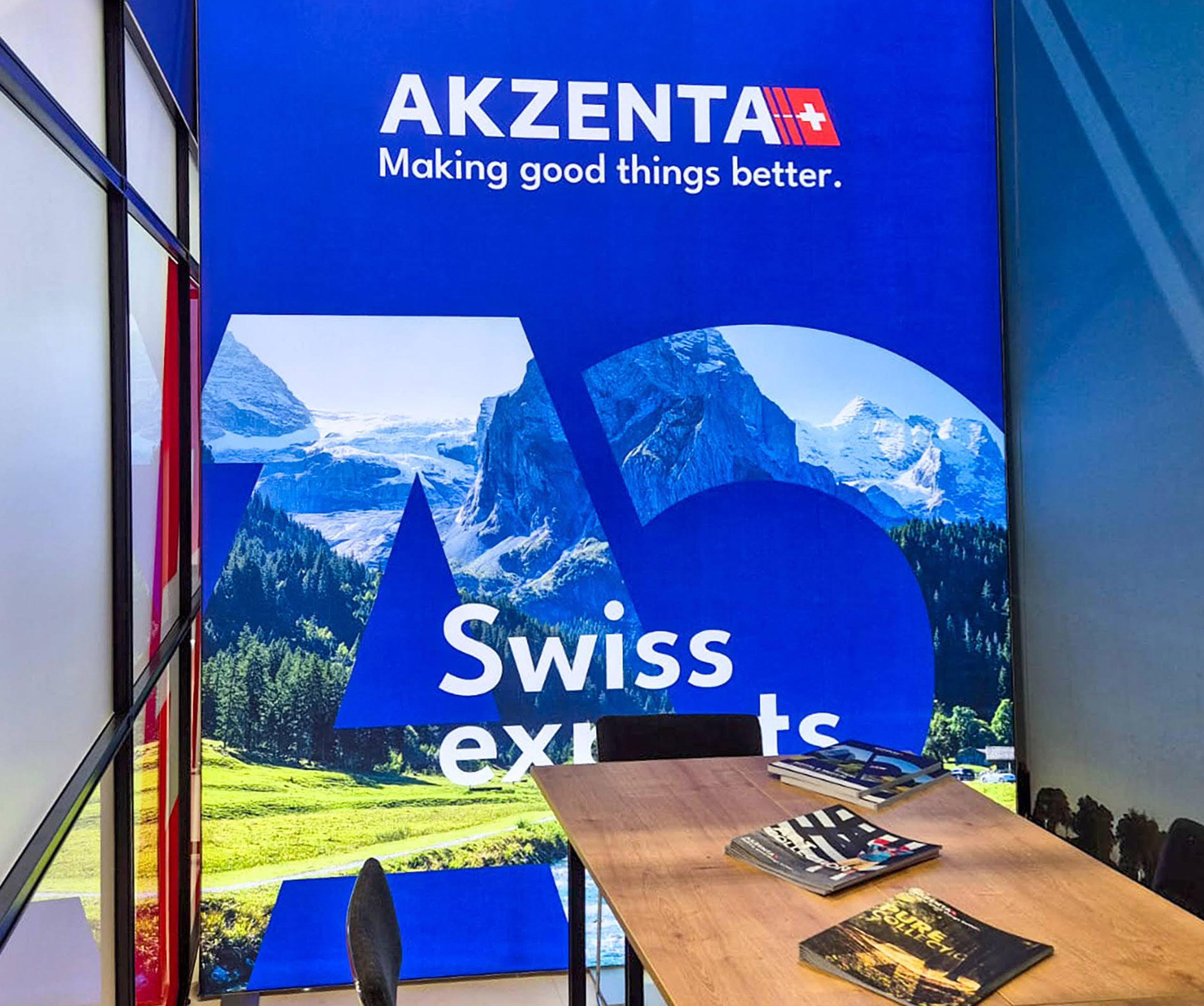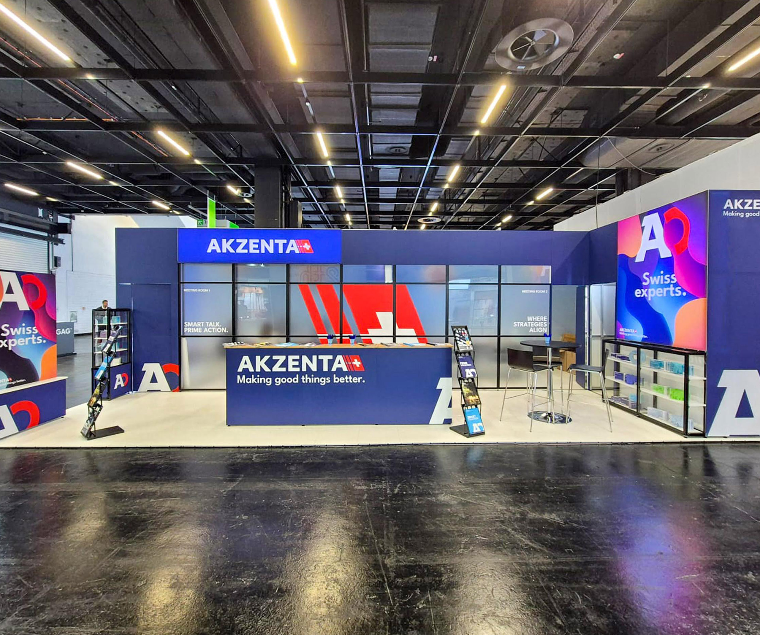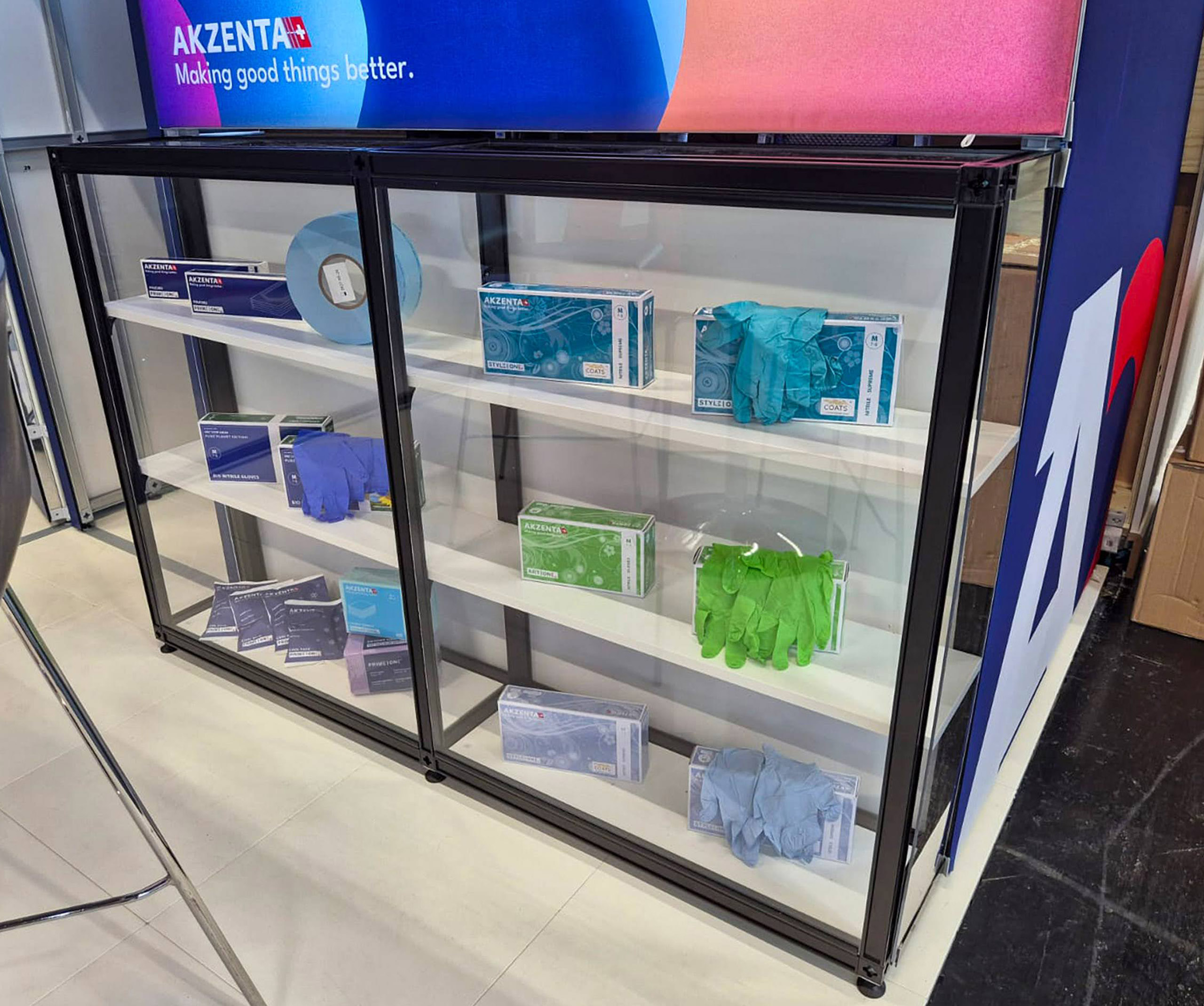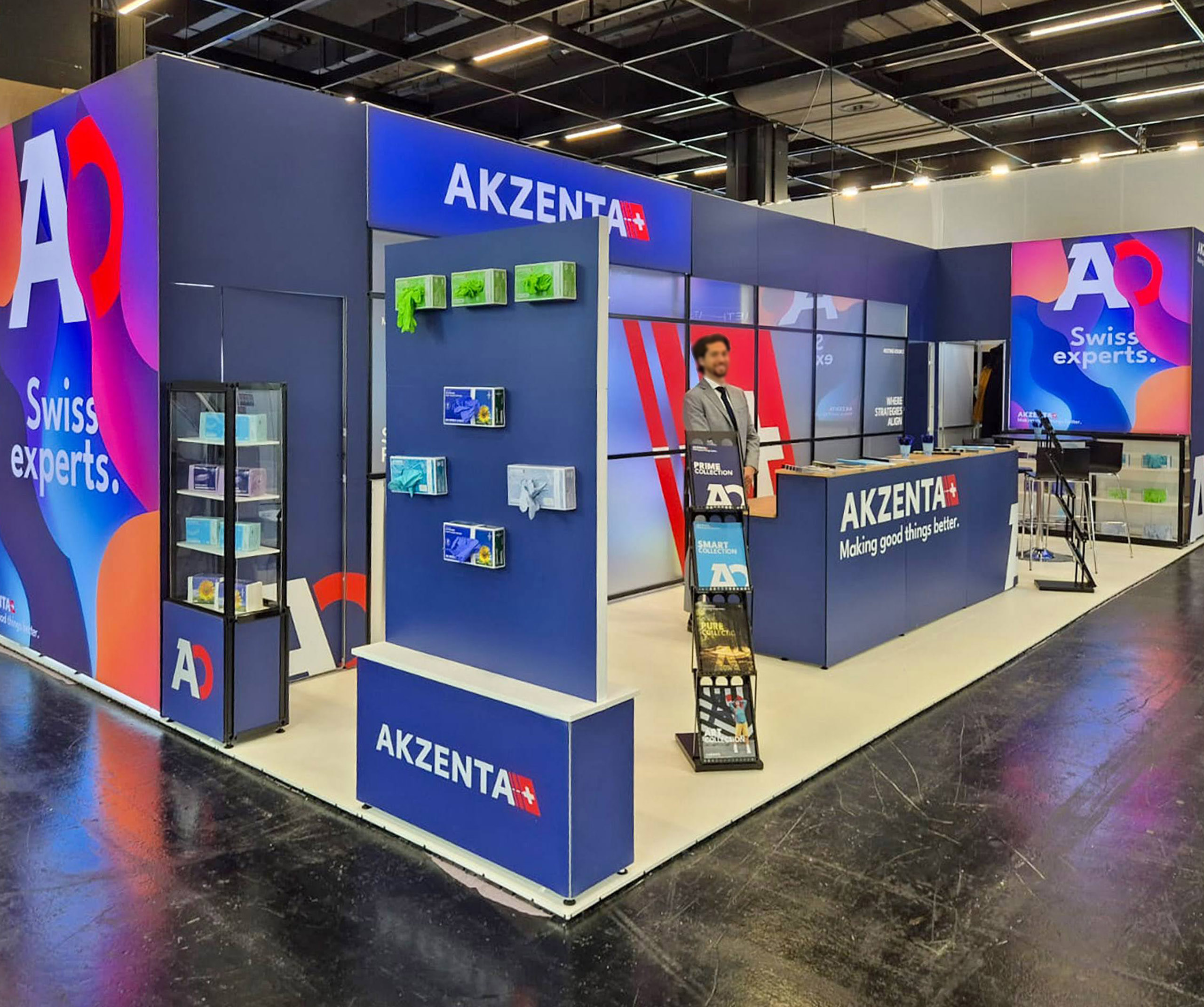 Biznisovo odlišne poňatý výstavný stánok pre klienta dodávajúceho spotrebný materiál pre dentálne ambulancie. Hlavnú časť stánku tvoria dve zasadacie miestnosti slúžiace na súkromné stretnutie s klientami. Vystavovaný produkt v tomto prípade ustúpil dôvernému rozhovoru s klientom a uzatváraniu dohôd. Zasadacie miestnosti sú predelené efektným Lightboxom. Praktické vitríny boli navrhnuté na mieru a sú súčasťou tohto strohého, no účelného dizajnu.